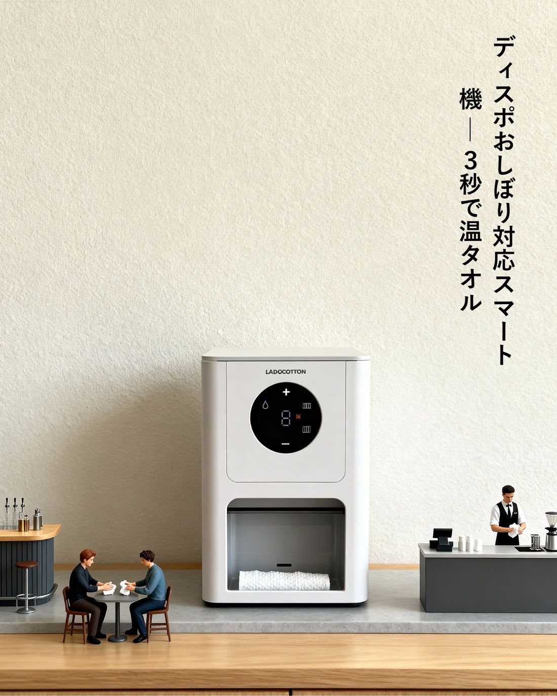 おしぼりを巻く・冷やす・温める作業がゼロに。スタッフの負担を大幅に軽減します。